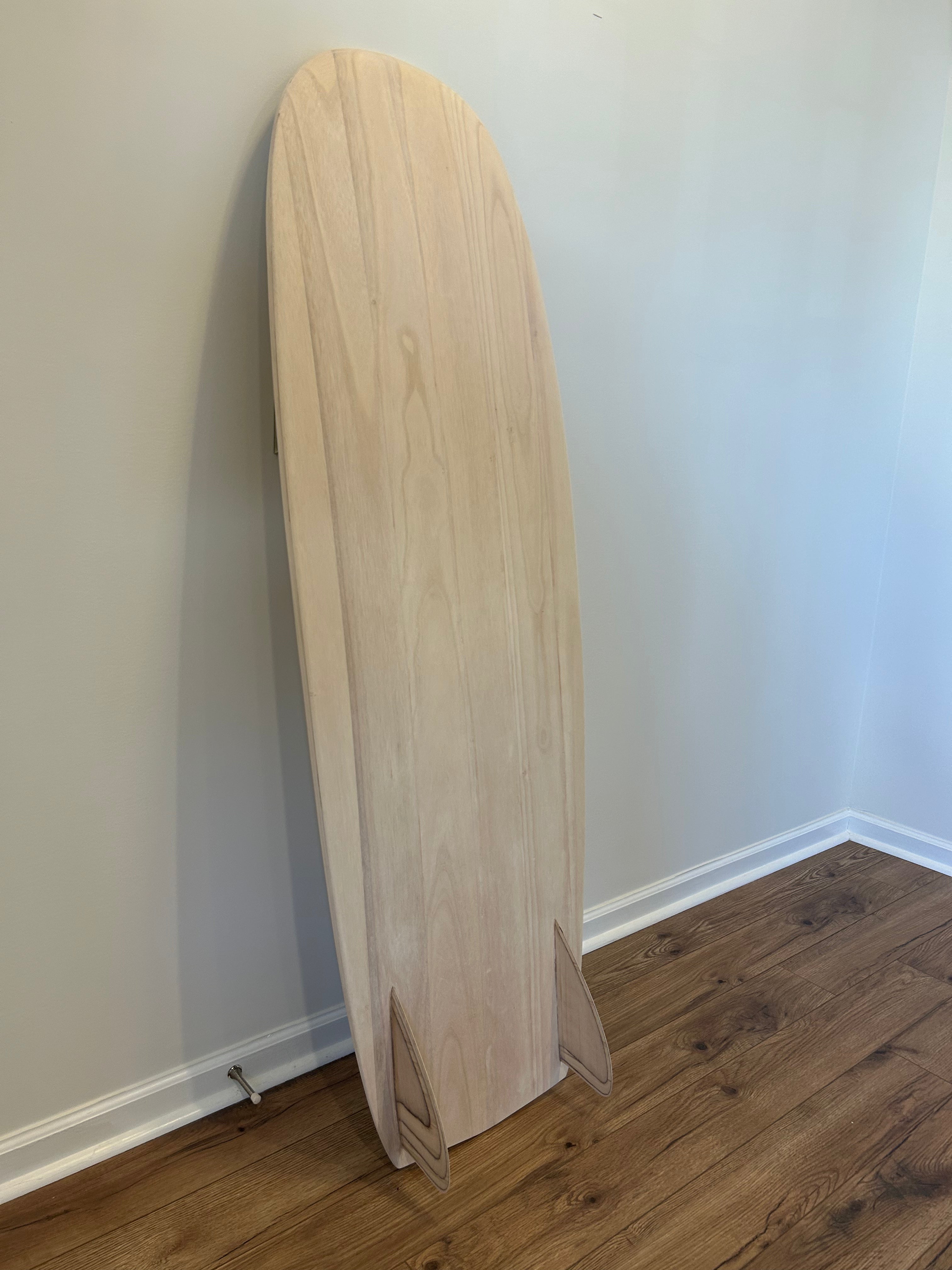 Each board is uniquely crafted from paulownia wood and completed with fins, vented leash plug, and coated in epoxy.